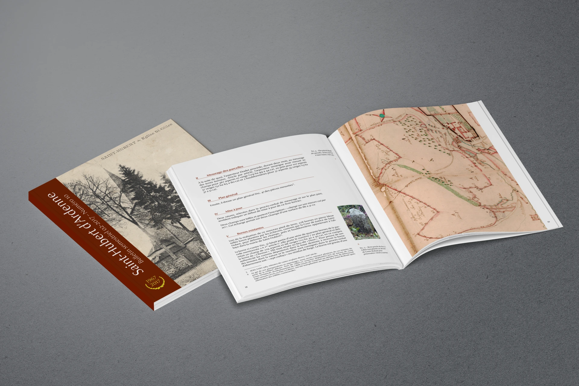 À partir de documents conservés aux Archives de l’État à Saint-Hubert, cet article décrit l’établissement en 1733 d’un « pied de terre », véritable registre foncier de l’abbaye. Bornages, plans et mesurages témoignent d’un vaste travail administratif destiné à préciser les limites des biens monastiques.